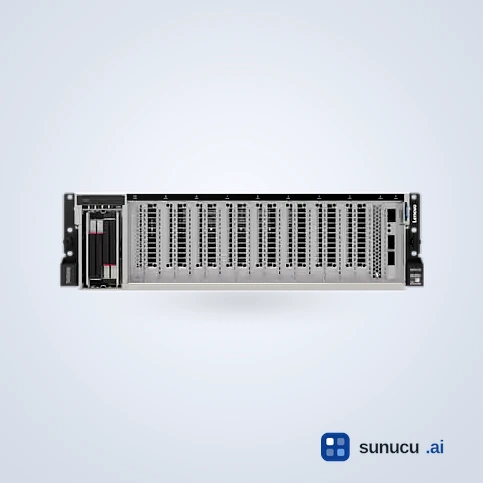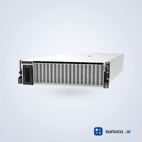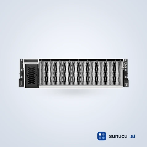 Lenovo ThinkSystem SR675 V3, 3U kasada 8 adet çift-geniş GPU desteği sunan yüksek yoğunluklu AI ve HPC sunucusudur. AMD EPYC 9005/9004 işlemciler, NVIDIA HGX H200 4-GPU NVLink modülü, Lenovo Neptune L2A hibrit sıvı soğutma ve PCIe Gen5 ile kurumsal AI eğitimi, inference, HPC ve render iş yükleri için optimize edilmiştir.