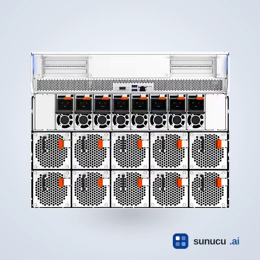 • 15x hot-swap N+1 yedekli fan (5 ön CPU/depolama + 10 arka GPU), 8x hot-swap N+N yedekli PSU